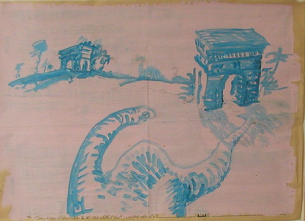 Paul Thek "ohne Titel (Arc de Triomphe), 1971, Acryl auf Zeitung, 43 x 59 cm