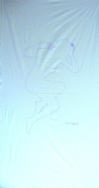 Lourdes Castro, "Ombre portée sur drap", 1969, Siebdruck auf Baumwolle, 150 x 290 cm