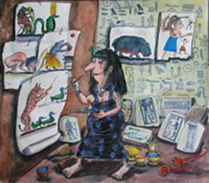 "Ägyptisches Atelier", 2002, Aquarell, Tusche, Acryl, Buntstift 44,6 x 50,6 cm