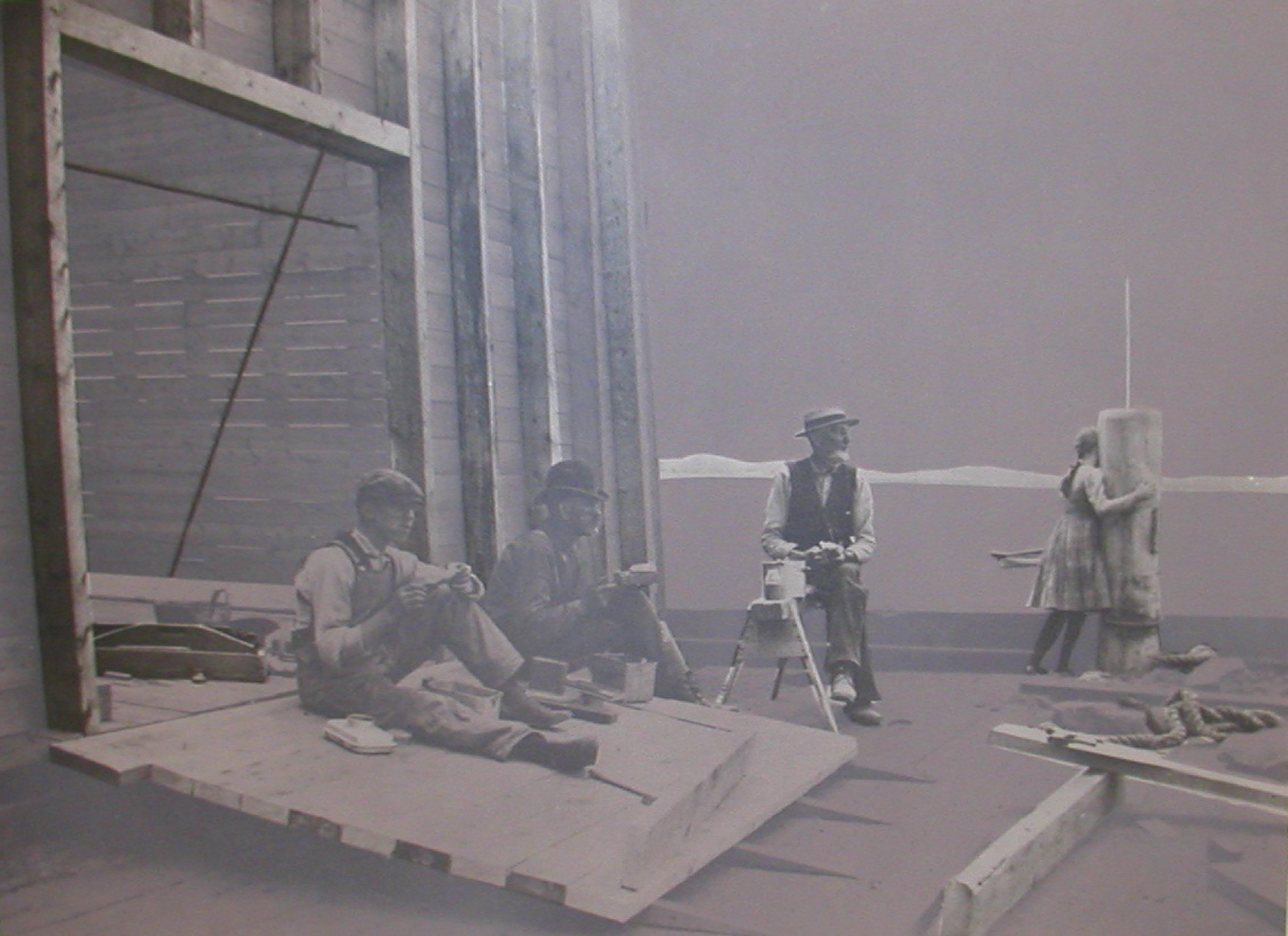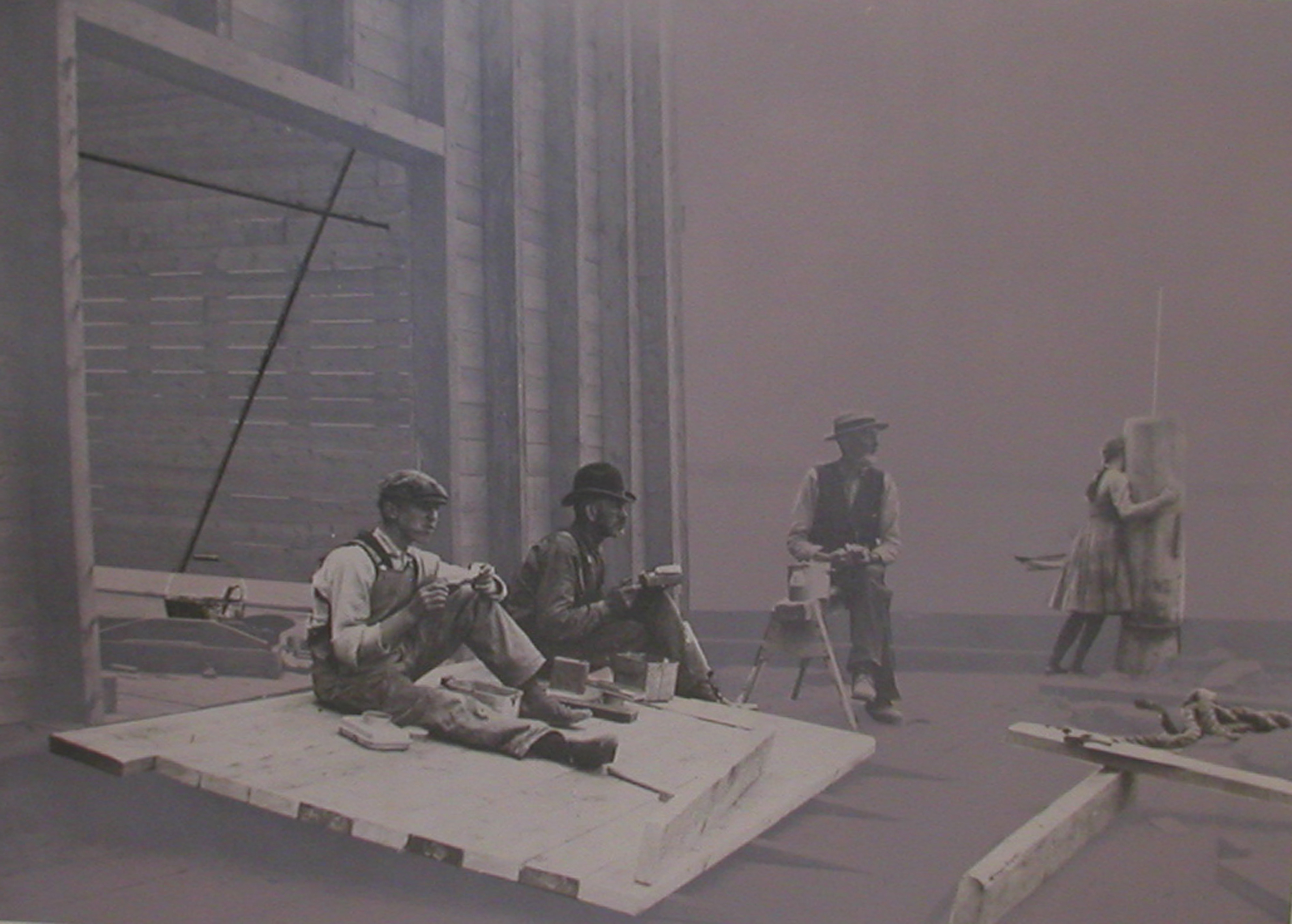 Dock Workers' Lunch Break, 1979, Tinte auf s/w-Fotos auf Karton (Diptychon), je 51 x 68,5 cm