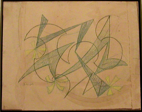 Giaccomo Balla "Linée di velocita e rumore", 1916, Gouache on paper on canvas, 40 x 50 cm